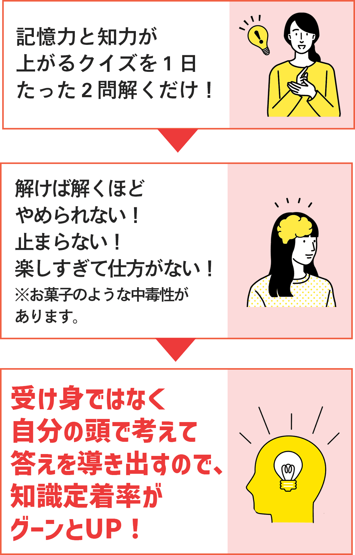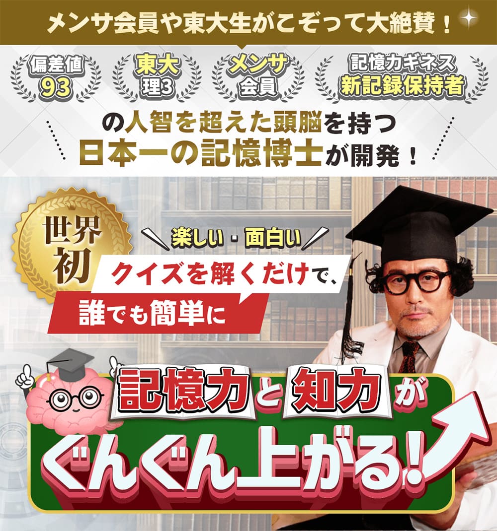 記憶術史上初となる、クイズを取り入れた学習スタイルを採用!